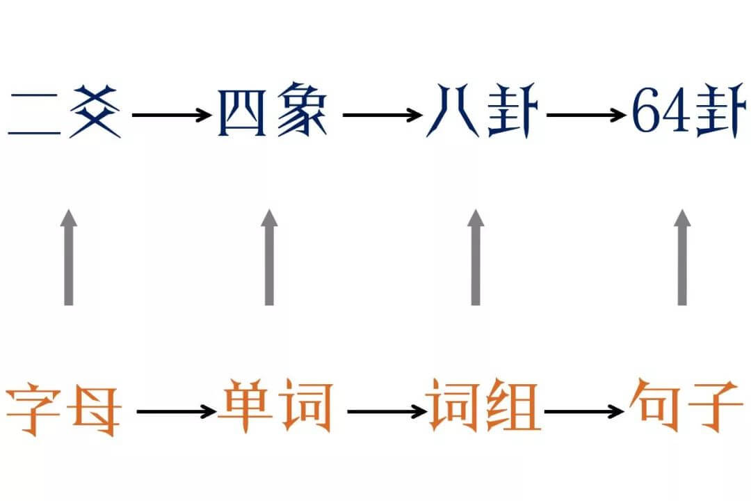 我们之前把“二爻”比作字母,把“四象”比作单词,又把“八卦”比作词组。