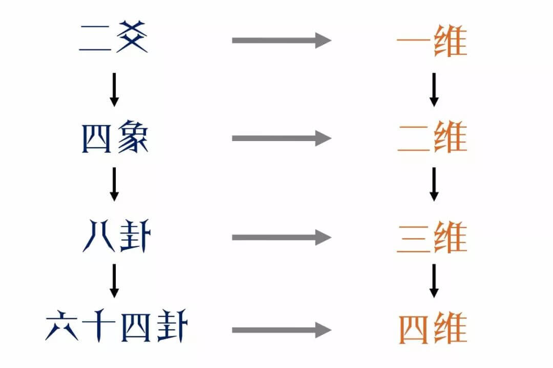 以此类推,“六十四卦”是比“八卦”更高级的模型,那就是四维。