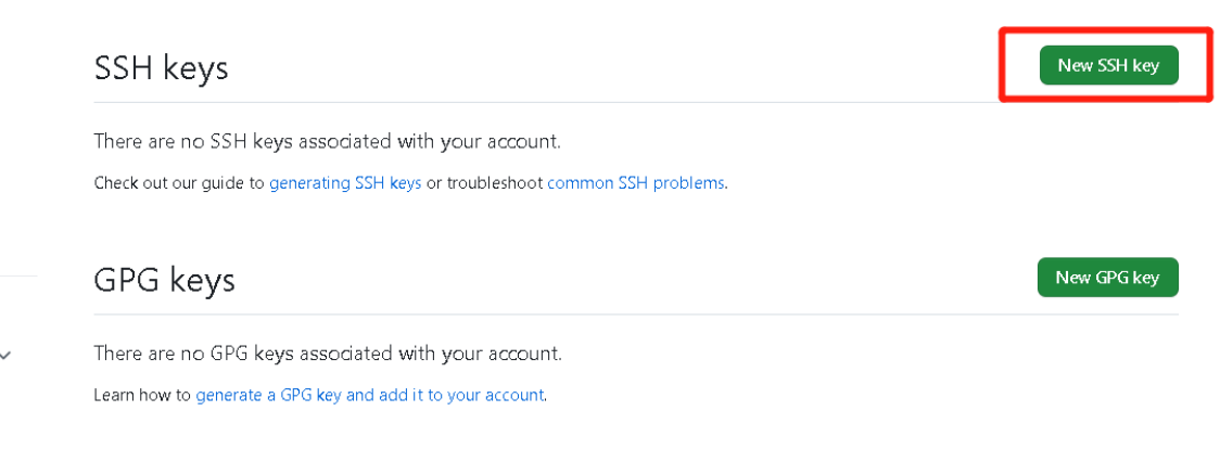 打开 github 的 settings — SSH and GPG keys — New SSH keys。