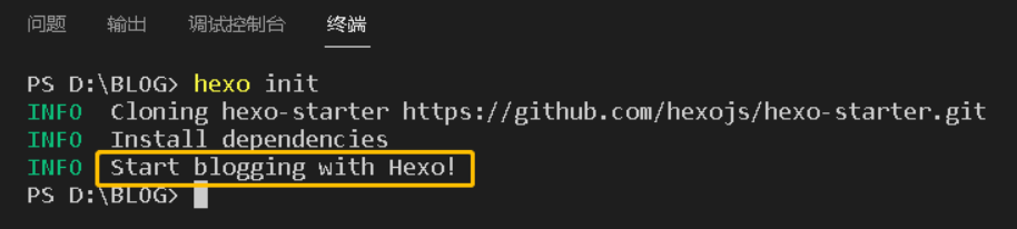 选择一个磁盘,新建一个文件夹“BLOG”(文件名随意)。博客的相关文件,会储存在此文件夹下。打开 vscode,在当前文件夹“BLOG”运行(或在该文件夹里右键鼠标,点击 “Git Bash Here”,运行)