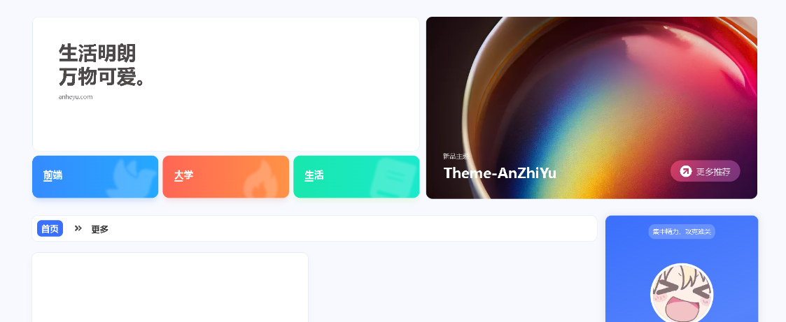 安装基于“butterfly ”修改的主题—— anzhiyu 主题。运行