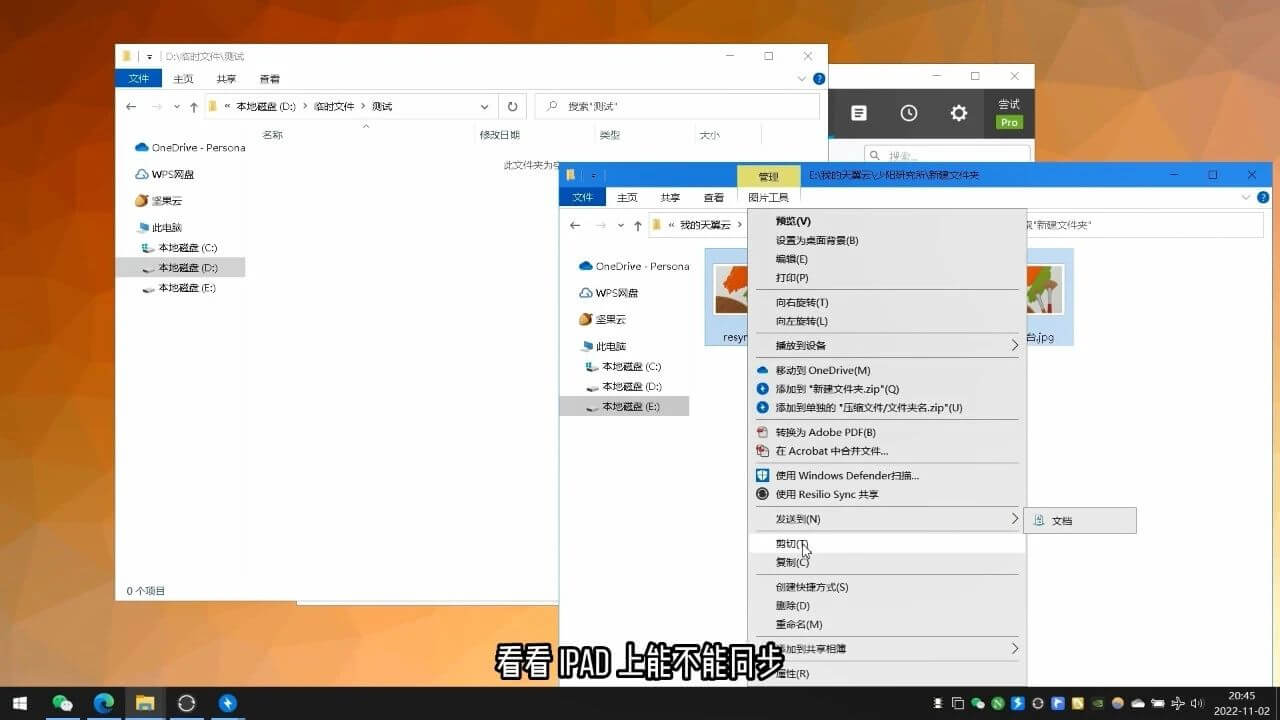 在 PC 端的同步文件夹丢进去几张照片,看看iPad上能不能同步